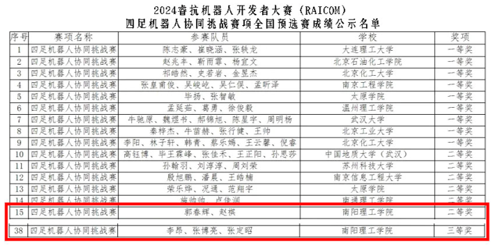 本网讯(特约记者/贾子琪 郭东恩 员工记者/陈自豪)2024年6月30日,备受瞩目的2024年度睿抗机器人开发者大赛(RAICOM)四足机器人协同挑战赛全国预选赛圆满收官,bevitor伟德国际1946AI战队凭借卓越的技术实力和紧密的团队协作,在激烈竞争中大放异彩,荣获二等奖与三等奖各一项。尤为值得庆贺的是,郭春辉、赵祺领衔的团队以其出色的机器人设计、算法优化及现场表现,成功锁定了全国总决赛的入场券。