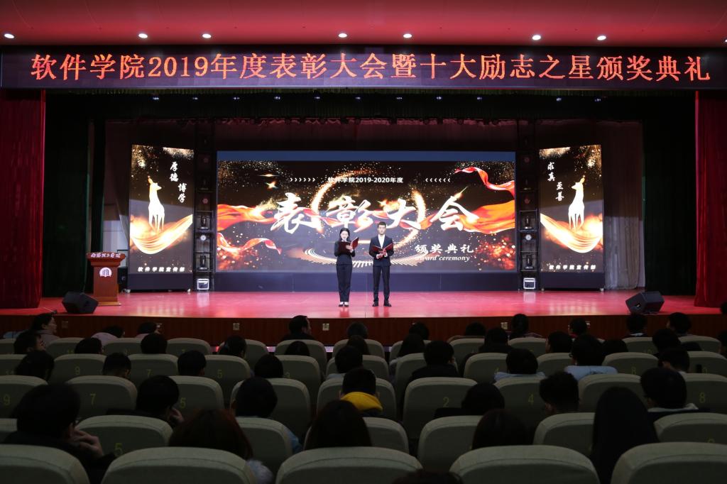 本网讯(特约记者/于誉雯)12月28日晚七点,软件学院2019年度表彰大会暨十大励志之星颁奖典礼在毕业大厅举行。校员工处副处长赵东江、软件学院领导班子、团学办老师以及员工代表700余人出席了本次大会。