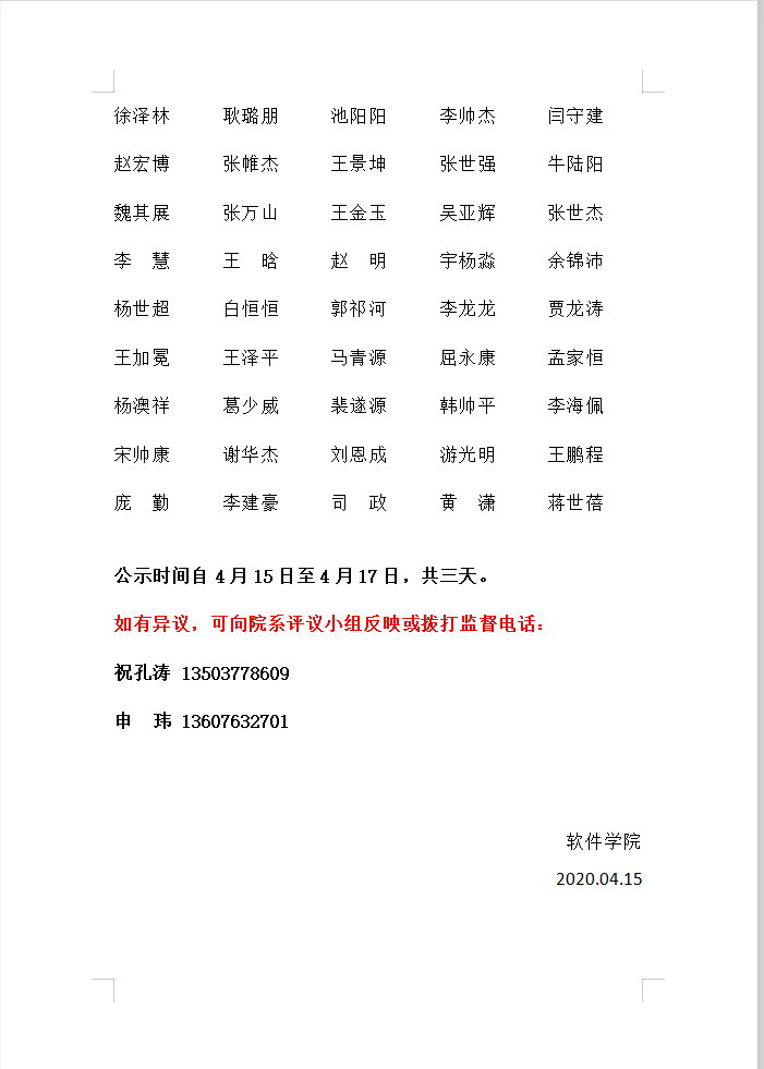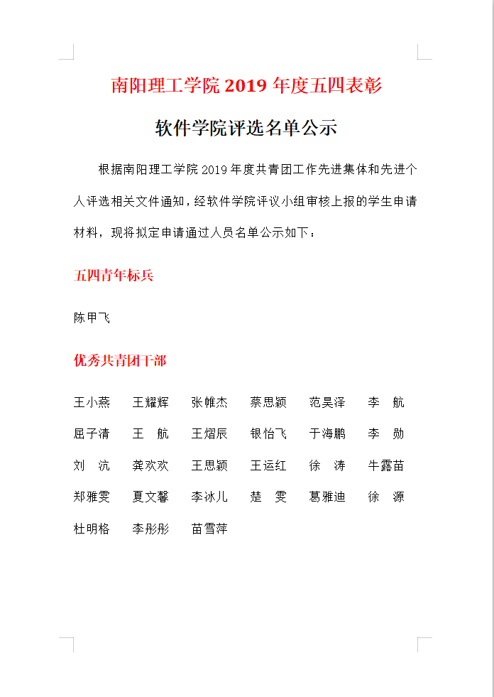 bevitor伟德国际19462019年度五四表彰 软件学院评选名单公示