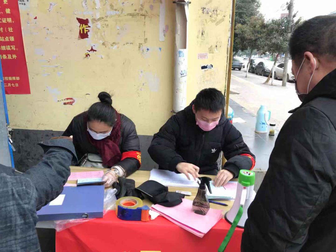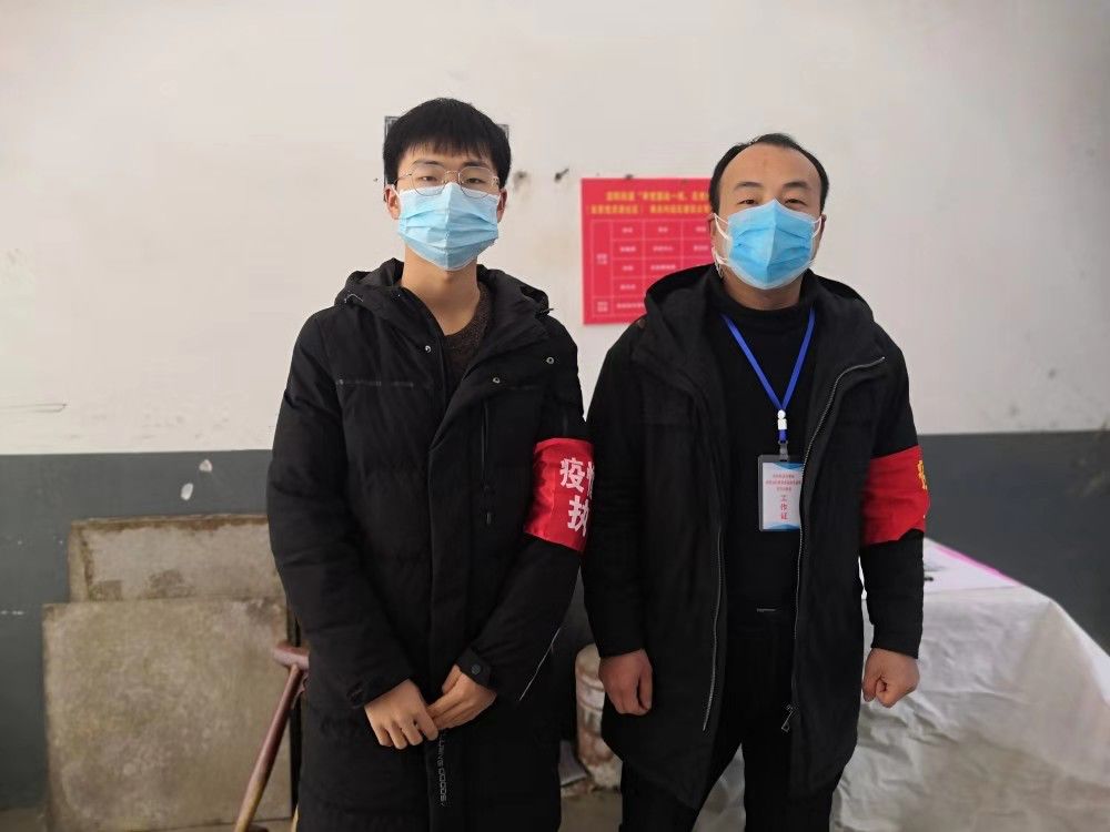 19级渗透一班 杨国煊同学(右一)响应号召在镇平涅阳街道办事处大世界社区执勤点做志愿者,对进出人员进行核查登记。展现当代老员工使命担当,为疫情阻击战贡献青春力量!