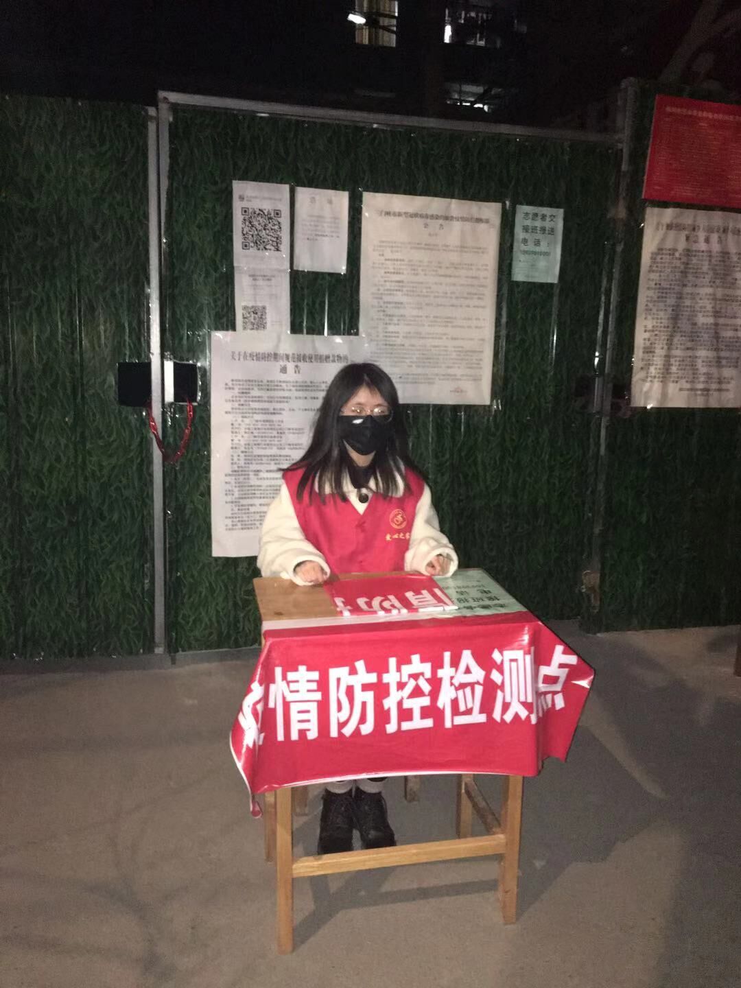 18级移动一班刘海鹏同学,在驻马店市确山县刘店镇防控检查站主动义务执勤。