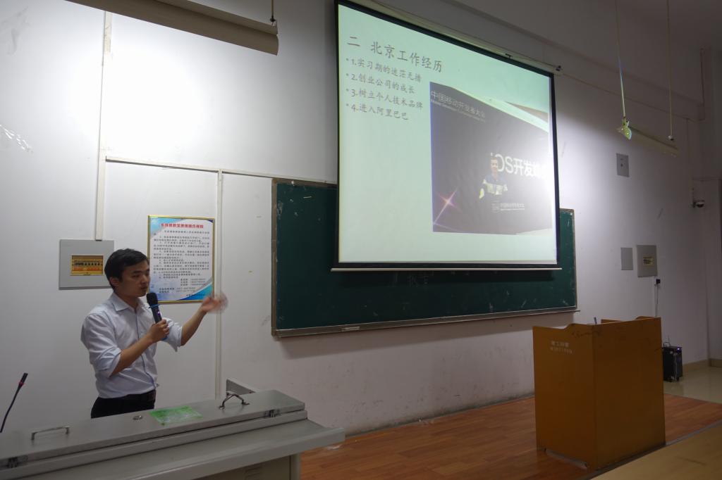 5月4日晚7点,在14号教学楼106教室内,软件学院举办的“张衡科技大讲堂”第一讲如期开讲。本次特邀了软件学院2010级移动设备应用开发专业毕业生陈宜龙为软件学院学子分享了他就职阿里巴巴的经历。陈宜龙给学弟学妹畅谈了自己北京工作经历,走过实习期的迷茫无措到阿里巴巴的快速成长,让他深深感受到企业文化,专业技术对个人发展的影响。针对即将毕业的大三、大四员工他还为学弟学妹分享面试技巧和注意事项。为大家进行了合理的职业规划建议。最后,陈宜龙就当前移动开发的前沿趋势与同学们进行交流。