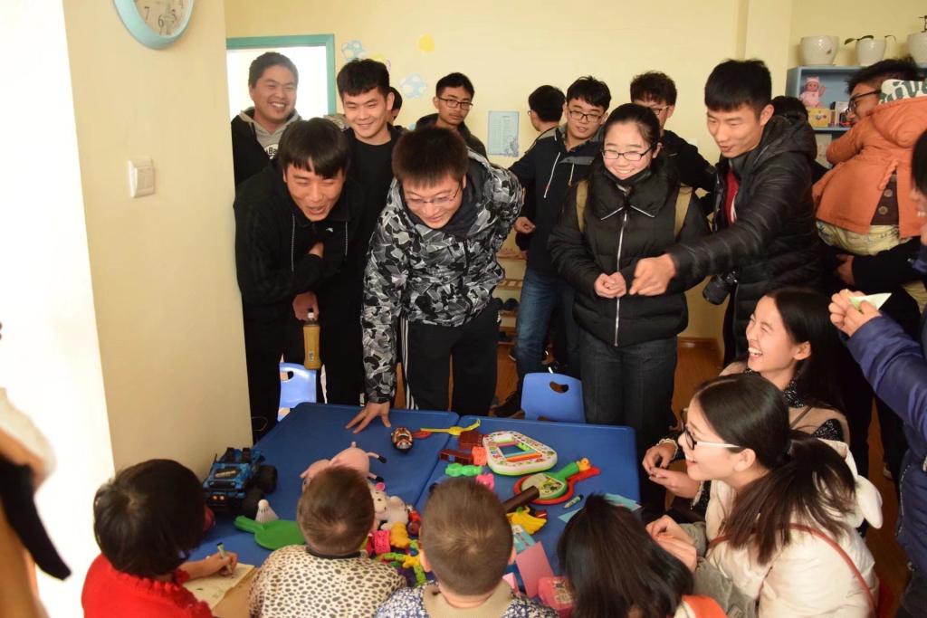 他们的到来,为孩子们的生活增添了色彩,在参观完孩子们的生活环境后,福利院的工作人员将一部分孩子带到体育活动室,寒冷的天气阻挡不了大家的热情,陈老师和一部分同学带领孩子们做起了游戏,在欢笑声中我们看到了这些孩子们最天真单纯的模样。而另一部分同学,则帮着工作人员照看孩子,有模有样的为小朋友喂起了饭,场面十分温馨。虽然窗外寒冷还刮着微风,但屋内的温暖不仅仅是给在场的每一个人身体上的舒适,更多的是暖了每个人的心。