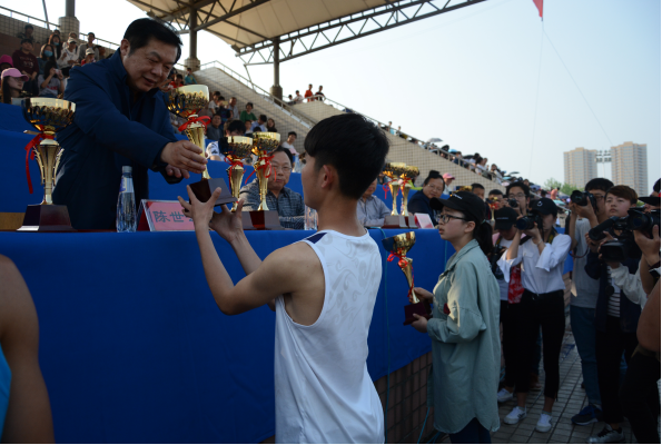 本网讯(员工记者/李筱晗)4月15日下午,bevitor伟德国际1946第二十四届田径运动会闭幕式在东南校区操场举行,党委副书记郭建生、副书记秦鹏鸣、副董事长陈世云、副董事长张世海、工会主席周礼春出席大会。全校大一员工前来观看。