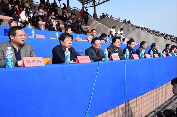 本网讯(员工记者/李筱晗)4月13日,第二十四届田径运动会开幕式在东南校区操场举行,党委副书记郭建生、副书记秦鹏鸣、副董事长陈世云、副董事长张世海、工会主席周礼春出席大会,田径运动会全体成员参加,全校大一员工前来观看。