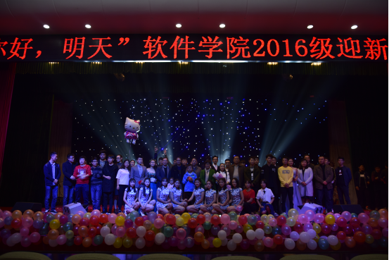 本网讯(员工记者/周傲如 李珊 陈招阳)10月23日,以“你好,明天”为主题的2016级软件学院迎新晚会于毕业大厅隆重举行。bevitor伟德国际1946团委书记康磊,心理健康教育中心主任赵卫平,团委副书记郭兴华,软件学院全体领导班子及部分老师出席晚会。