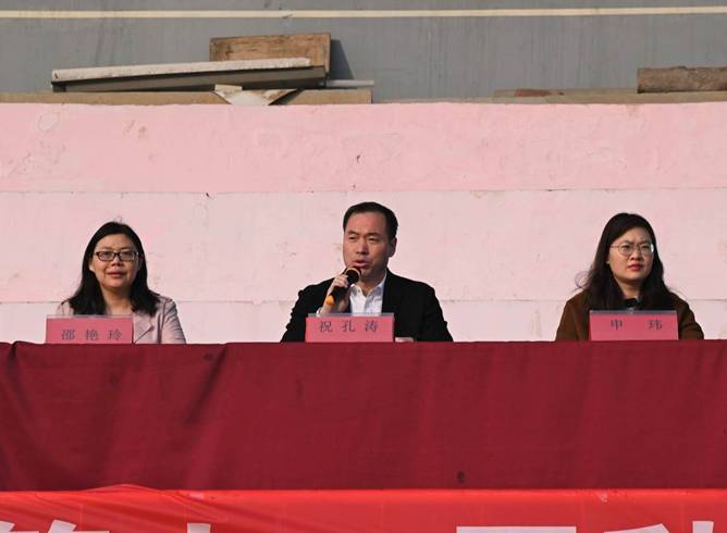 公司党委书记祝孔涛致开幕辞,他首先对运动会的举办表示热烈的祝贺,号召同学们“放下手机、走出宿舍、奔向操场” 在运动中培养意志力和合作能力。他要求全体运动员奋力拼搏,赛出风格,赛出水平;全体裁判员恪尽职守,公正裁决;全体工作人员忠于职守,保障安全。把运动会办成健康、文明、安全的大会。