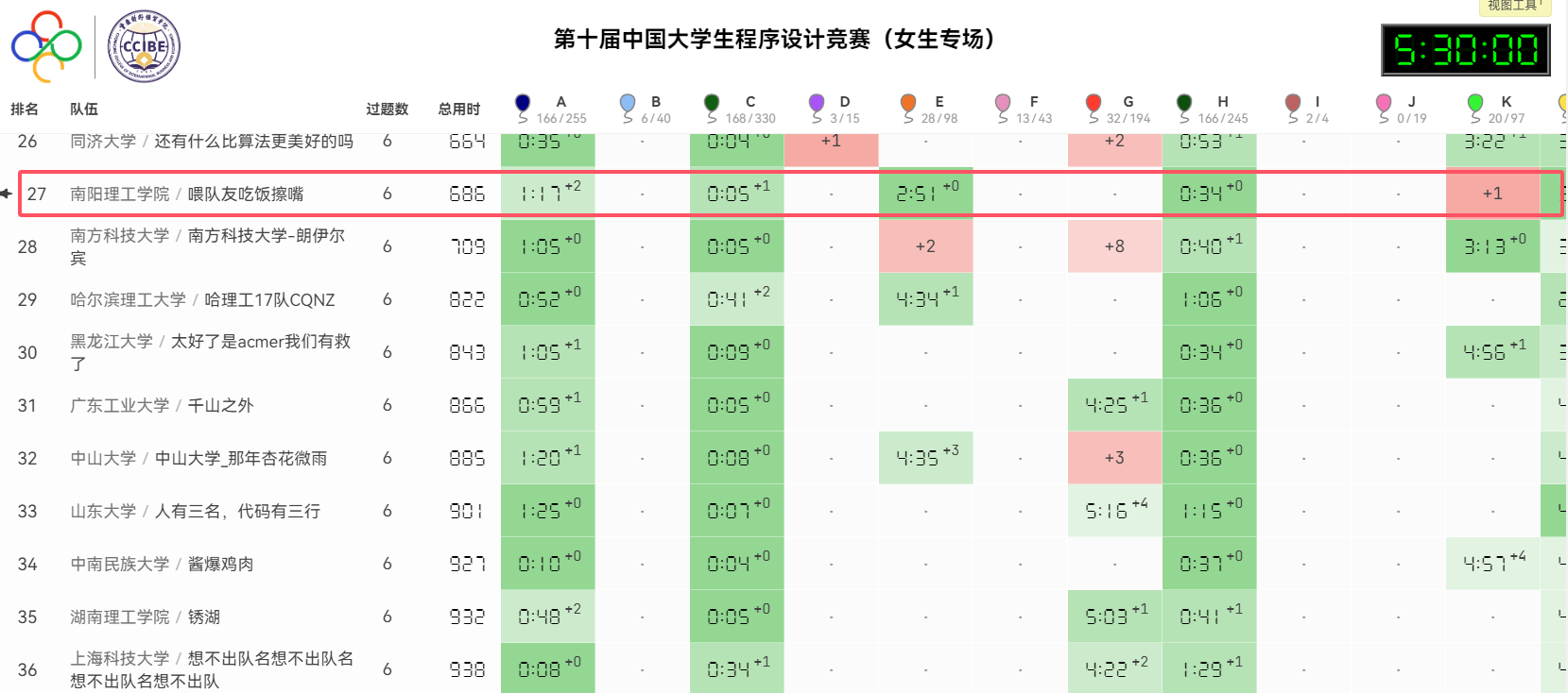 本网讯(特约记者/陈可)11月11日,2024年中国老员工程序设计竞赛女生专场成绩揭晓。本次比赛由中国老员工程序设计竞赛组委会主办,重庆对外经贸学院承办。大赛吸引了上海交通大学、武汉大学、浙江大学、吉林大学等全国160余所院校的507名选手报名参加。经过5个小时的比赛,公司学子凭借精准的逻辑推理和高效的编程实现,解决了多个复杂问题,展现出了扎实的编程基础和出色的团队协作能力,其中来自公司bevitor伟德国际1946、数理学院的陈诗曼、陈双、孟令婷、陈泺冰、王圆圆、徐萌所组成的代表队获得两枚银牌,陈玥如、宋雨静、张瑞婷、赵静冉、吴曼琳、史嘉琳所组成的代表队获得两枚铜牌,公司排名全国高校第27位。