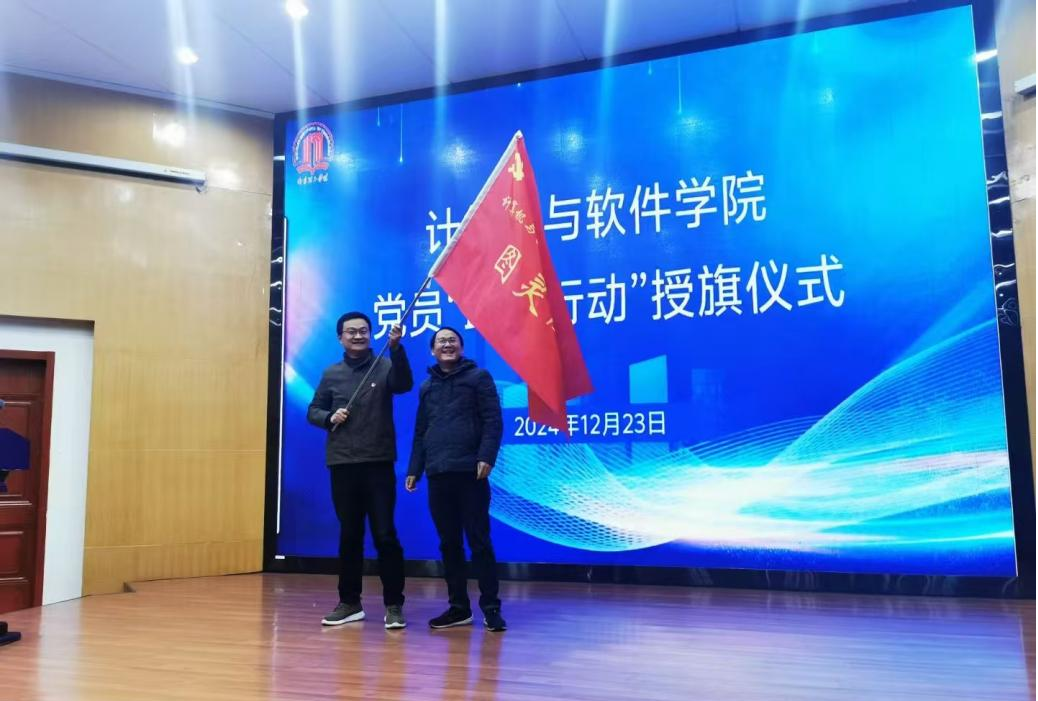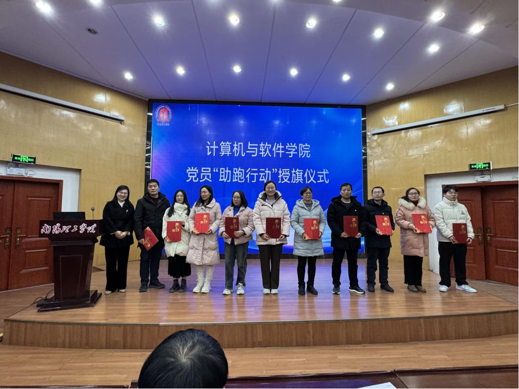 在“万码行动”助跑团的授旗仪式上,公司党委副书记申玮为助跑团成员代表颁发证书,副经理郭东恩为党员“助跑行动”志愿者詹英老师授旗。这面旗帜象征着责任与荣誉,也传递了全院师生团结奋进的信念。