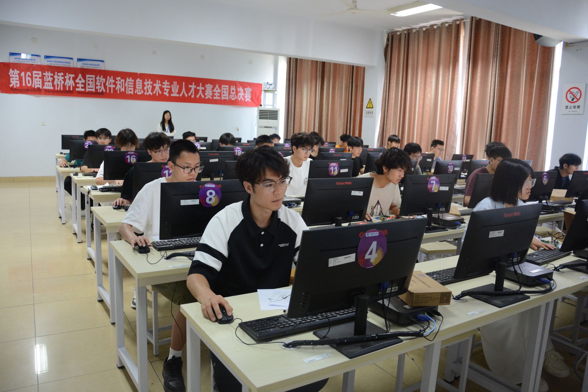 在大赛组委会的大力支持下,公司继续强化监考巡考力量和技术保障,投入10余个标准化考场,配备百余名师生志愿者全程保障。采用"现场监考+云监考+安防监控"三重保障体系,确保竞赛公平性,为140余名河南赛区选手提供全流程技术支持。确保了大赛顺利举办,切实维护了大赛公平公正。