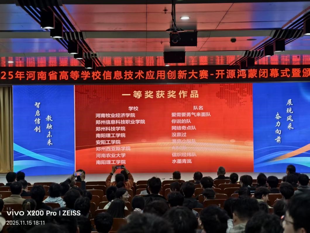 本届大赛汇聚了来自全省多所高校的227个团队,围绕开源鸿蒙技术生态进行创新设计与实战比拼,是河南省高校信息技术领域规格高、影响力强的专业赛事之一。本次获奖的五支队伍涵盖智慧农业、智能宠物和智能驾驶等多个方向,参赛作品在系统架构设计、鸿蒙应用开发、功能创新及工程实现等方面均表现突出。