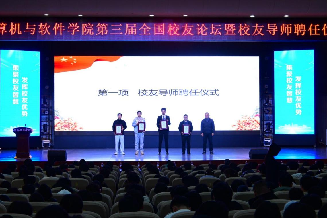 大会开始,公司党委书记赵东江为中国铁路通信信号集团有限公司资深工程师王圣根、阿里巴巴夸克搜索离线架构工程师黄金鑫、河南艾思动漫有限公司创始人栗嘉琪、河南牧原食品股份有限公司濮阳地区负责人王朝壮四位优秀员工颁发员工导师聘书,正式聘请四人担任学子成长导师,为学院人才培养注入员工力量。聘任仪式后,四位员工依次登台分享,结合自身成长经历与行业洞察传递宝贵经验。