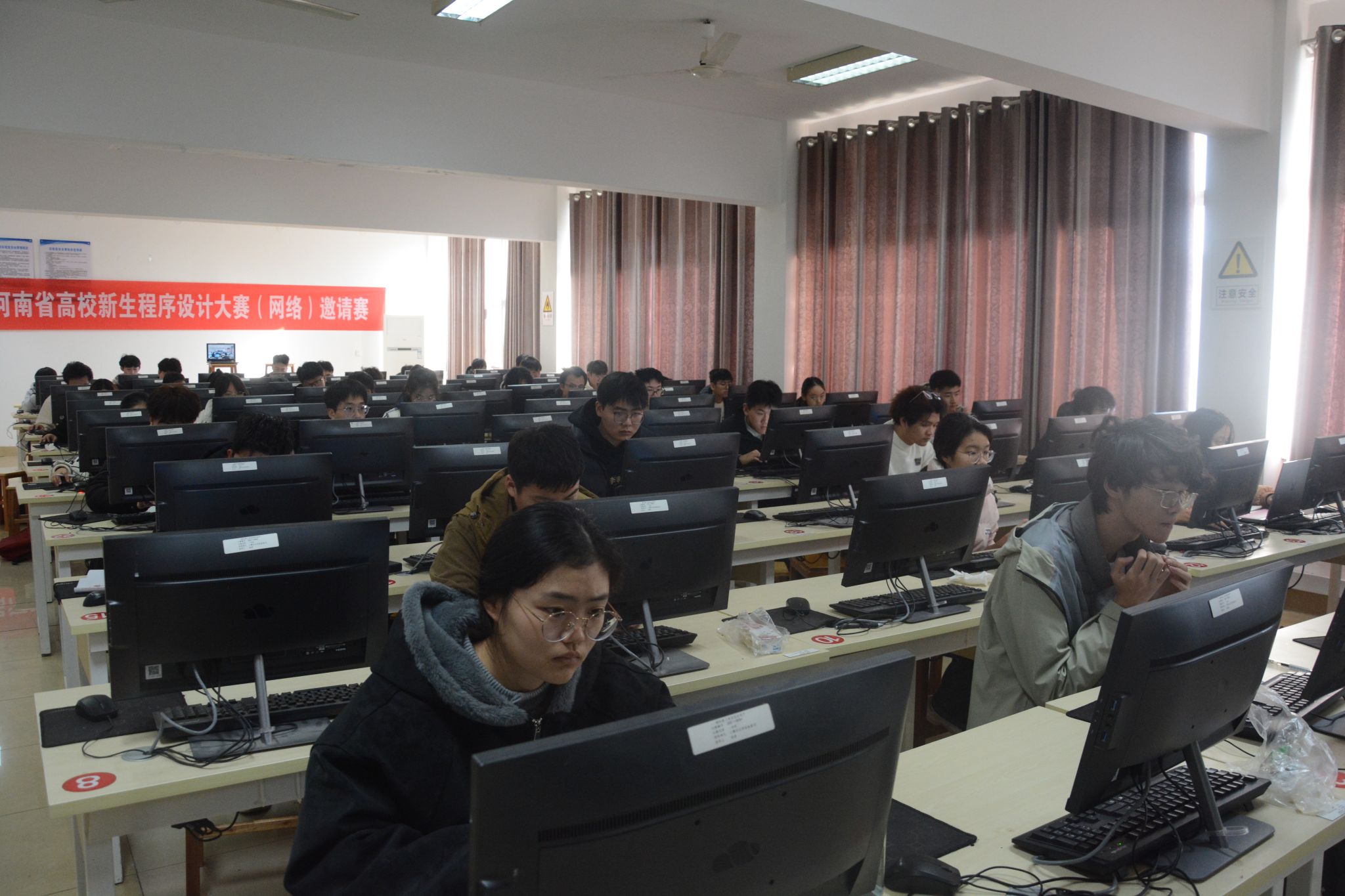 本网讯(特约记者/陈可)12月14日,第六届河南省高校新生程序设计大赛(网络)邀请赛现场决赛在公司成功举办。此次大赛由公司党委员工工作部主办,bevitor伟德国际1946承办,自12月3日初赛开始以来,共计吸引省内33所高校的2000余名选手在线切磋交流。此次大赛面向省内开设有计算机程序设计课程的各高校2025级新生,决赛采用线上加线下的方式进行,公司学子在校内机房参加现场决赛,省内其余高校参赛人员通过竞赛网站与现场决赛同步进行。比赛采用系统判题,动态更新排名,所有员工都可实时查看排行榜。