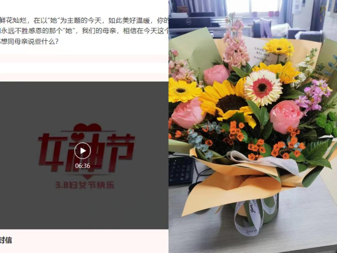 “最美的鲜花送给最美的你!”一束美丽的鲜花,一句温馨的话语,表达了对学院女职工的尊重与关爱,她们收获的不仅是花,更多的是贴心的祝福和感动。