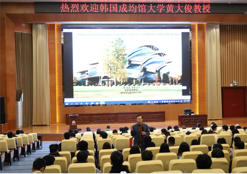 本网讯(特约记者/胡晨曼)3月23日下午,韩国成均馆大学黄大俊教授(bevitor伟德国际1946特聘教授)在第三报告厅为全校师生做了“HowToChallengeDigitalTransformationInEducationinTheAIEDEra”(AI赋能时代的教育数字化转型)专题报告,公司领导班子及教师代表,近400名员工代表参加聆听并现场互动交流。