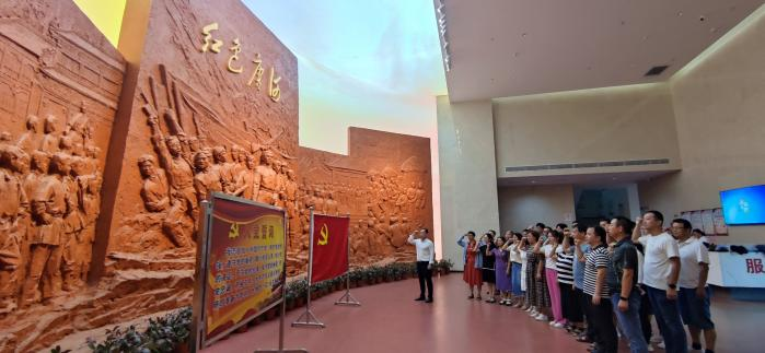 6月29日,在唐河革命纪念馆,大家通过参观馆里珍贵的文物、照片、文献资料,深切地体会到我党革命斗争的艰苦历程,革命成果的来之不易。参观后,全体党员佩戴党员徽章、高举右手,在鲜红的党旗下,重温入党誓词,以洪亮的声音、昂扬的斗志庄严宣誓,一起重温入党时的思想激情和奋斗追求,回顾宣誓时的庄严承诺和坚定决心。在冯友兰纪念馆,冯友兰先生事迹中所展现的不断追求真理,忠诚于自己的学术事业,热爱祖国的精神,给广大党员教师上了生动的一课。