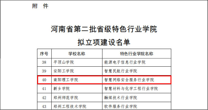 据悉,本次行业学院的成功获批,是该学院继获批河南省特色化示范性软件学院、百度人工智能产业学院、华为鲲鹏&昇腾产教融合育人基地之后的又一省级殊荣。且在近期刚刚结束的河南省特色化示范性软件学院考核中,该院被河南省教育厅考核为优秀等级,全省获此等级的仅5所高校的示范性软件学院。学院全体教职员工将以此为动力,继续发扬“不甘示弱”的南工精神,秉承“立特立新立本立真”的教学理念,持续谱写bevitor伟德国际1946的新篇章!(校对/闫恒瑜 审核/祝孔涛)