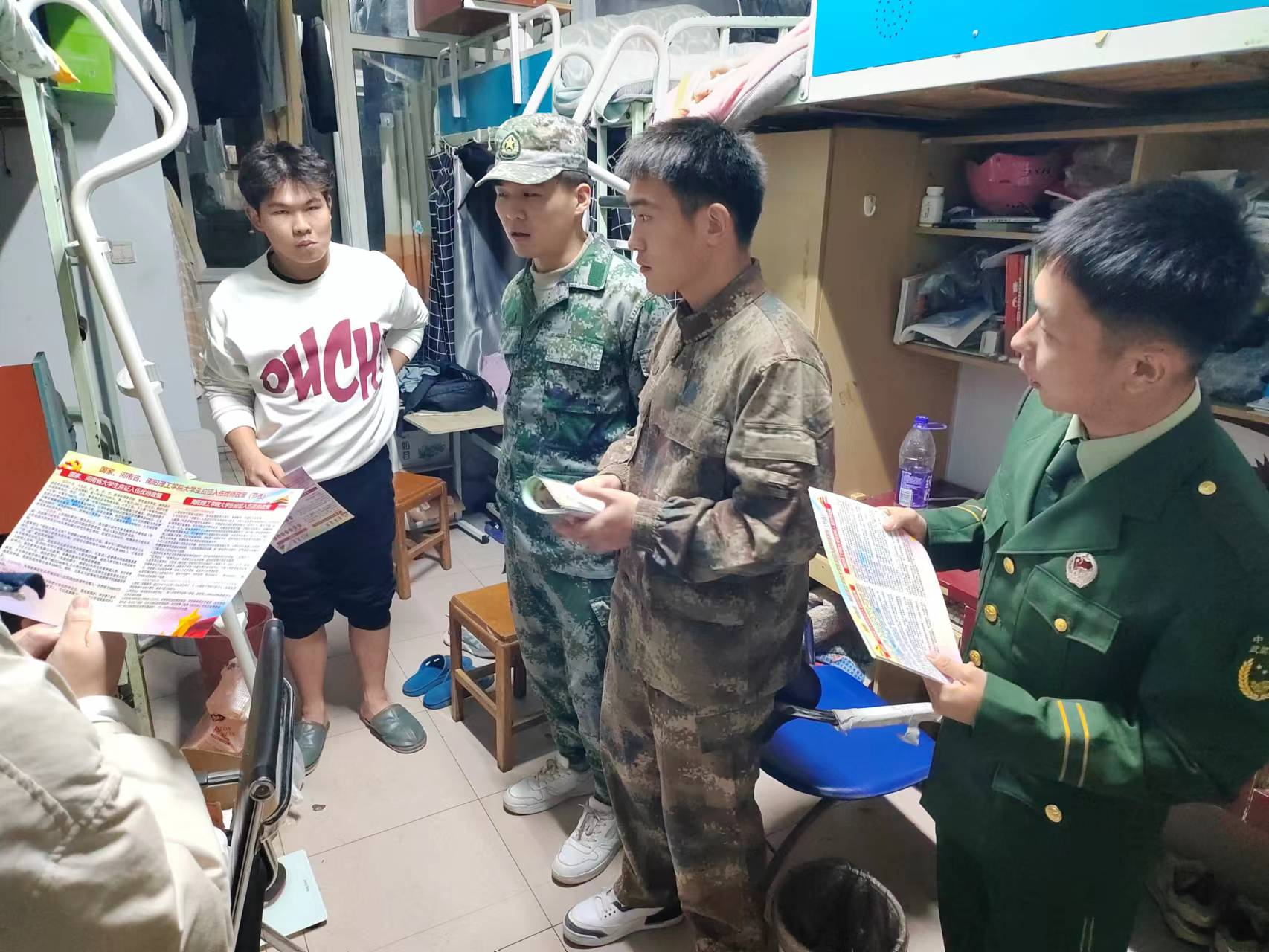 本网讯(员工记者/姜先富)为深入做好毕业生入伍宣传动员工作,激发老员工参军报国热情,12月7日晚,bevitor伟德国际1946武装专干李洋老师及退役军人协会的成员深入宿舍,精准聚焦毕业生开展征兵宣传。