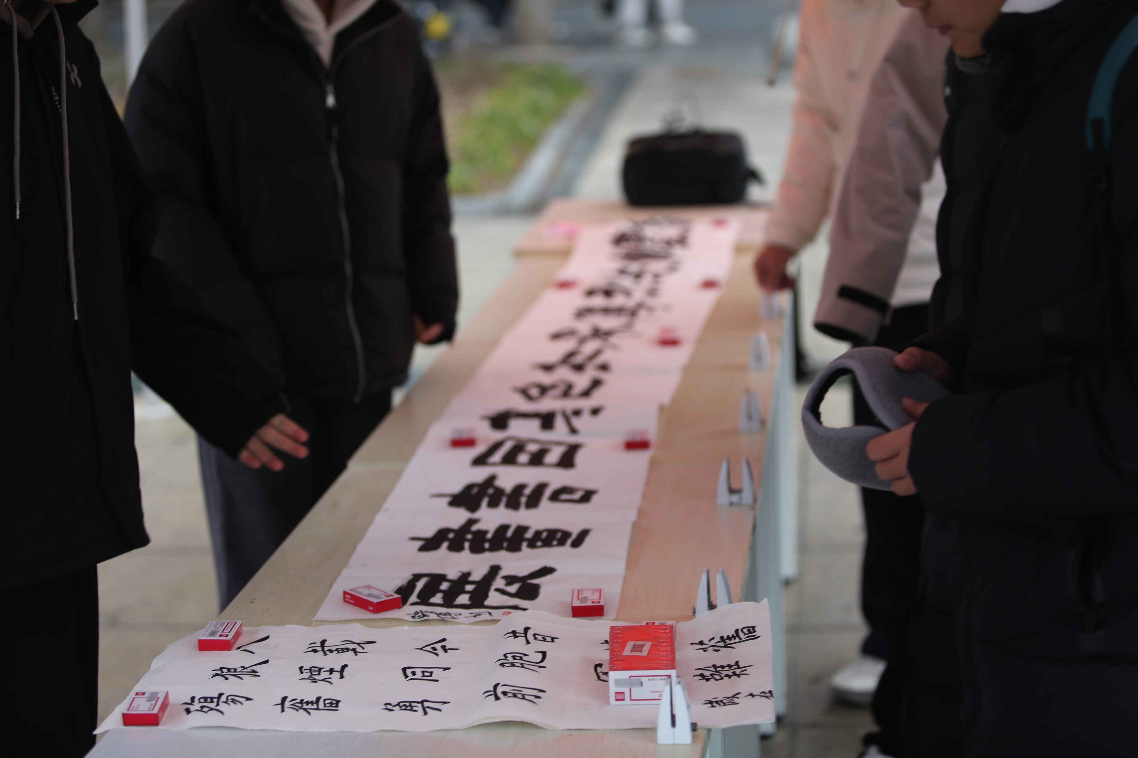 活动现场设置“勿忘国耻,共圆中国梦”——主题书法作品展。