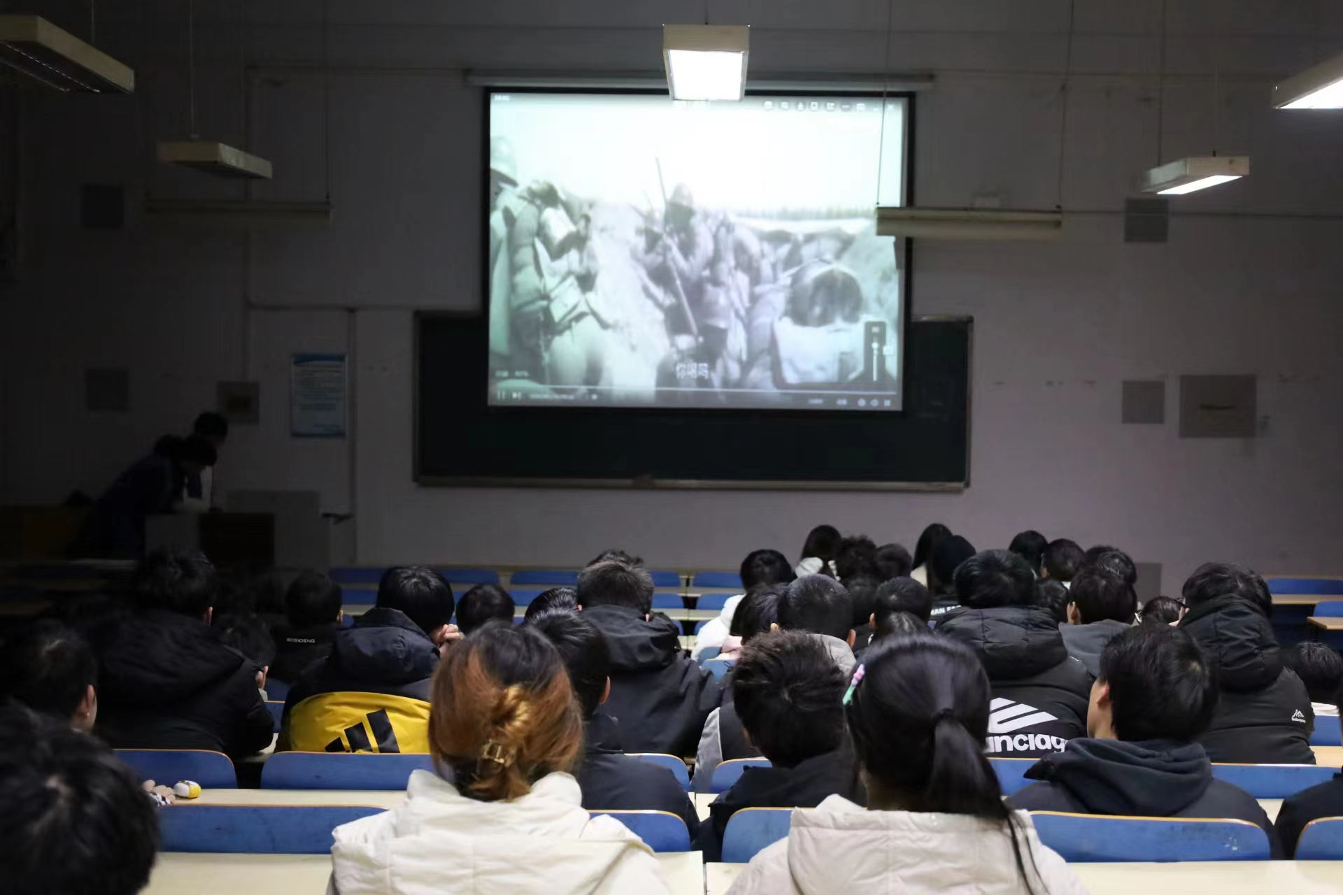 活动当晚,bevitor伟德国际1946在14教组织集体观影并在宿舍楼举行亮灯纪念活动,摆出“1937”及“1213”图案,纪念南京大屠杀中逝去的同胞们。
