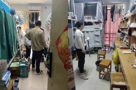 在走访宿舍过程中,辅导员仔细查看了员工宿舍内务整理、卫生安全以及通风消毒等情况,向同学们再次传达了春季传染病预防的重要性,并与同学们就学业情况、职业规划、考研出国等内容进行了深入交流。