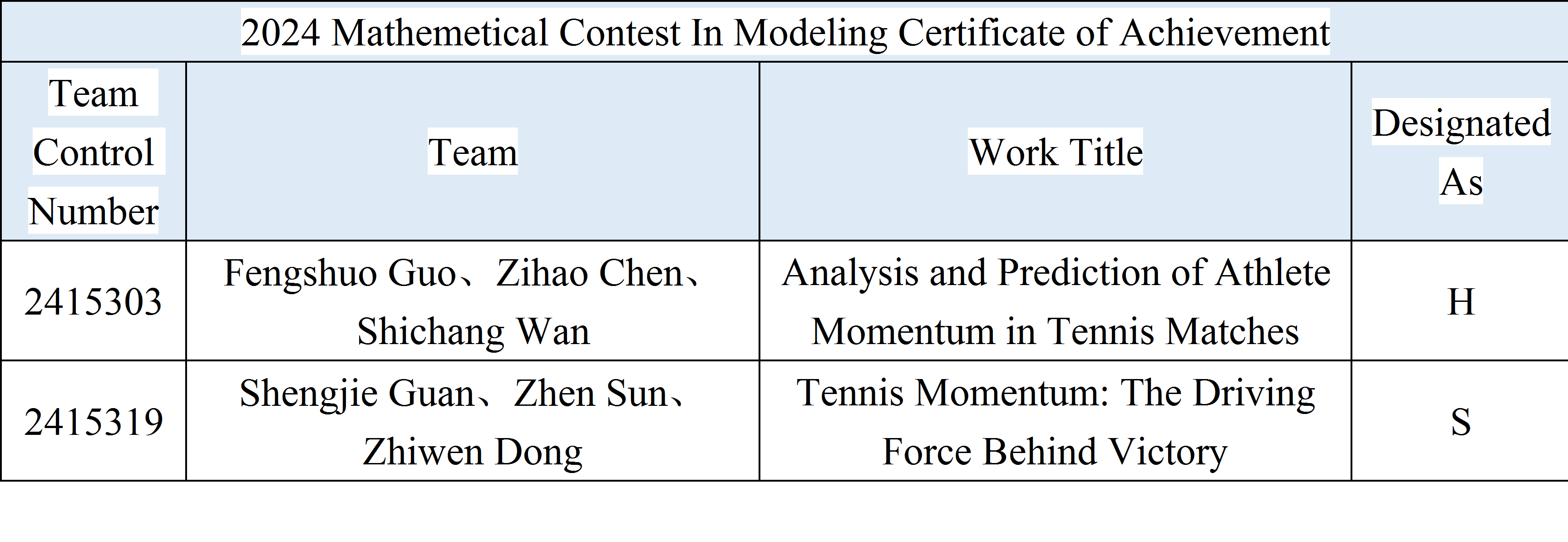 本网讯(特约记者/贾子琪 郭东恩 员工记者/董智文)5月7日,备受瞩目的2024年美国老员工数学建模竞赛(MCM/ICM,简称“美赛”)结果正式公布,公司两支参赛队伍均有所斩获,分别荣获H奖与S奖。