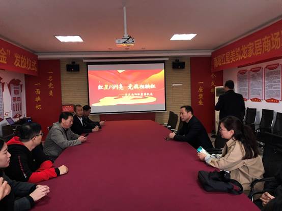 党支部一行来到红星美凯龙行政楼,参观了联合党支部党建连廊,祝孔涛对红星美凯龙的党建连廊建设高度赞扬。在观看红星美凯龙党建工作视频后,双方就各自党建工作开展情况展开交流。祝孔涛肯定红星美凯龙联合党支部在党建与自身业务紧密结合上做出的成绩。学院也将结合高校特点、教学情况、员工活动等开展党建活动,做好公司党建阵地建设,点线面结合,做到党建和教学全面发展,以高质量党建推动学院高质量发展。