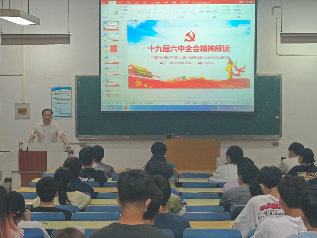 回到教室内,祝孔涛围绕《中国共产党第十九届中央委员会第六次全体会议公报》内容,对三个“伟大成就”、五大“历史意义”、十大“经验”等方面进行了详细解读。祝孔涛指出,全会全面总结了党的百年奋斗重大成就和历史经验,同学们要结合自身情况,坚持理论联系实际,坚持活学活用,把党的十九届六中全会精神真正落到实处。