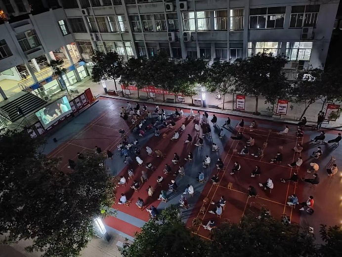 影片开播后,不少在附近的师生被吸引过来,驻足观看。此次通过在党建主题文化苑开展观影活动,将红色电影与党建主题文化苑结合起来,创新观影形式,吸引更多的师生参与进来,为广大师生搭建了一个很好的红色教育平台。以此为契机,接下来bevitor伟德国际1946将开展一个月每周一次的露天红色观影活动。