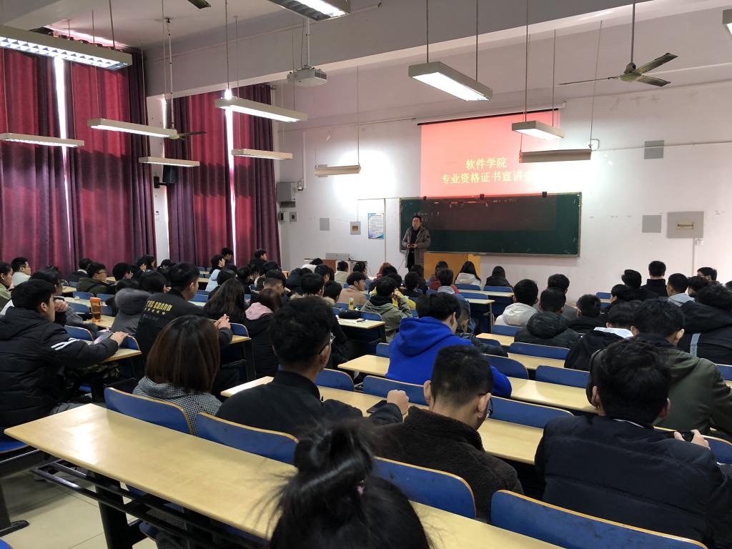软件学院邀请了企业负责人对软件行业资格考证知识进行了分析与指导,计算机技术与软件专业技术资格(水平)考试是原中国计算机软件专业技术资格和水平考试的完善与发展。由国家人力资源和社会保障部(原人事部)、工业和信息化部(原信息产业部)领导的国家级考试。
