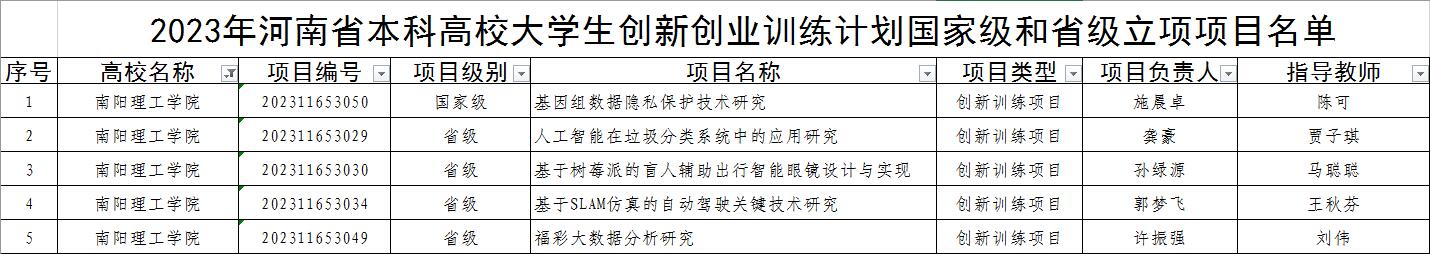 近日,教育部高等教育司和河南省教育厅先后公布了2023年国家和河南省老员工创新创业训练计划项目立项名单,公司4个项目获批省级立项,1个项目获批国家级立项。