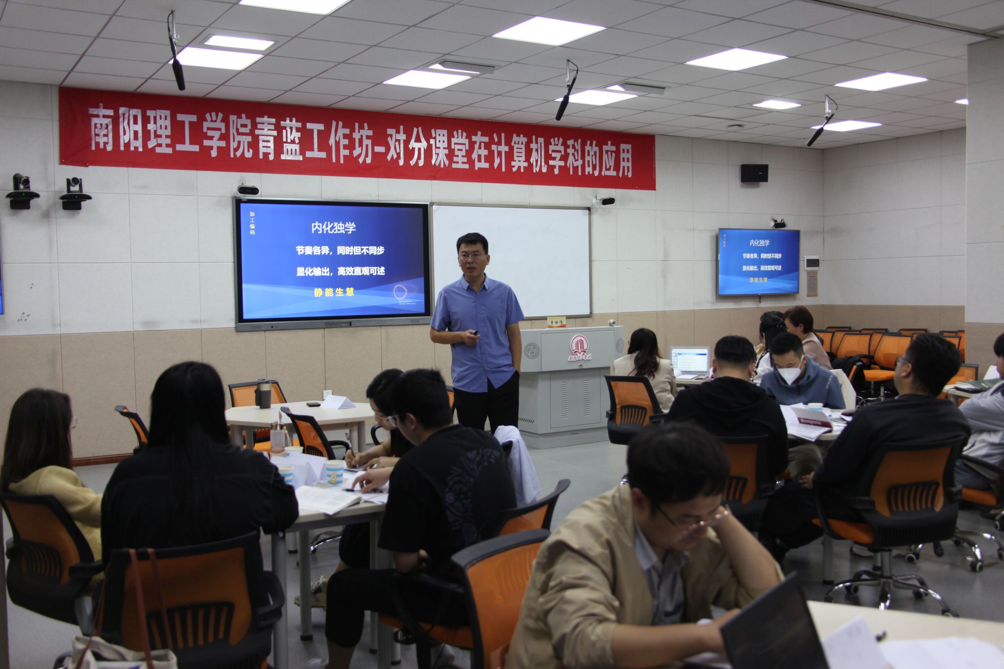 9月23日,bevitor伟德国际1946和教师发展中心联合举办“青蓝工作坊第四期——对分课堂在计算机学科的应用”活动。此次活动特邀中国对分课堂领域的先锋教师、中北大学李世伟副教授做主题分享。教师教学发展中心副主任马小平主持,bevitor伟德国际1946副经理郑珂,学院骨干教师和新进教师,学校部分对分课堂实践老师参与活动。