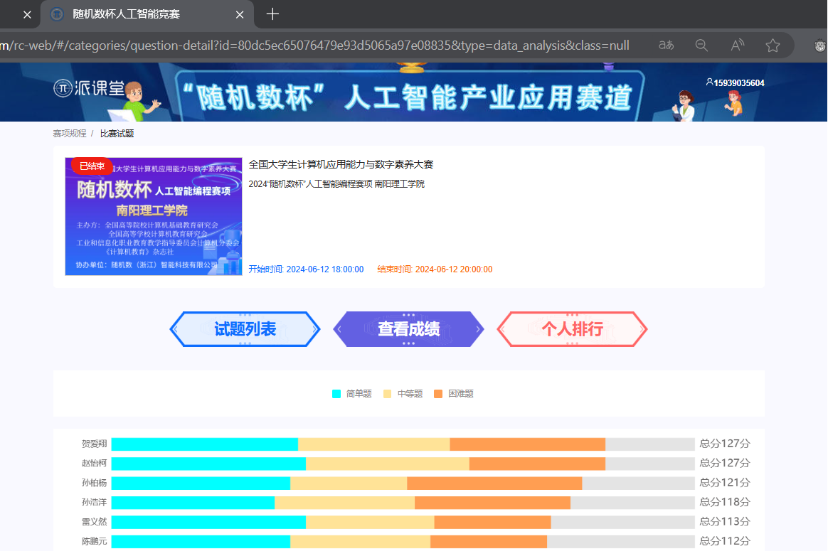 经过激烈角逐,6名参赛选手脱颖而出,晋级省赛,他们将参与9月份举行的省级比赛。比赛结果不仅展示了选手们扎实的编程功底,更体现了他们对人工智能领域的深刻理解和独到见解。我们期待bevitor伟德国际1946的选手们能够在后期省赛和国赛更广阔的舞台上绽放光彩。