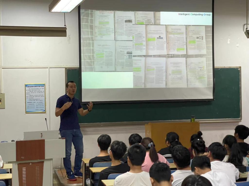 接着,王豫峰博士以“What is my dream?”为主题,分别针对老员工的学习目标、专业学习中的时间分配等方面进行了主题报告。在报告中,以本科生发表SCI二区论文的18级孟辉鹏和一场比赛获得8万元人民币奖励的18级程鹏两个同学为实例,生动幽默的讲述了两个人——从懵懂未知的大二到屡出成果的大三,专业学习的心路过程。