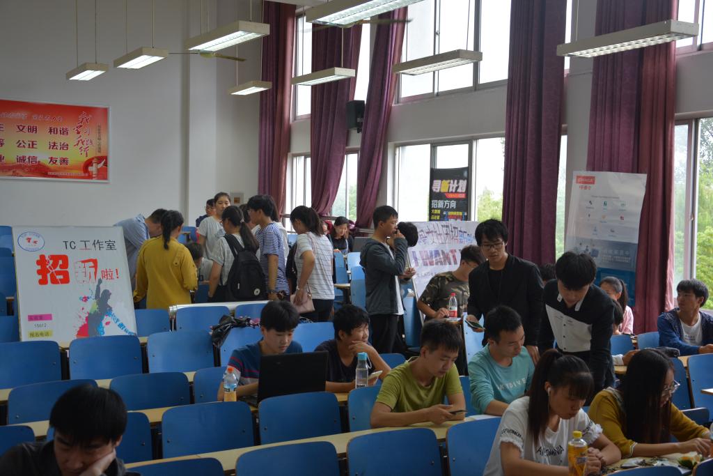 9月24日老员工科技园迎来了正式的招新,由于天气的原因,招新活动在14号楼104,204,206三个教室举行。由科技园管委会举办的这次活动得到了同学们的热烈欢迎,17级新生踊跃报名,招新现场门庭若市。