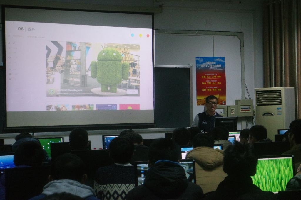 演讲内容:这次演讲每个社团都出了一个人演讲。其中南工社团是李金仓,他对南工社团进行了详细的介绍,包含社团的历史,社团所获得荣誉,社团未来的发展,对观众的提问也很详细的进行了回答。网趣社团是社长王彪来演讲,主要讲了社团的主攻方向,运维方面,然后是学校和项目中关于网络上的知识,对观众的提问也很认真的回答了。啄木鸟是刘德军进行的演讲,讲了一些社团的主攻的方向,在渗透方面比较好,以及一些关于黑客的知识。图灵社团是王欣欣社长演讲的,主要讲我们的大苹果公司的一些比较前段的知识,一些职能的小工具。最后是梦翔李冉社长为我们带来了关于安卓和谷歌翻墙的一些高端知识,虽然中国关闭了关于安卓的一些网站,但是我们的李冉同学为我们带来了更多的“番外”知识。
