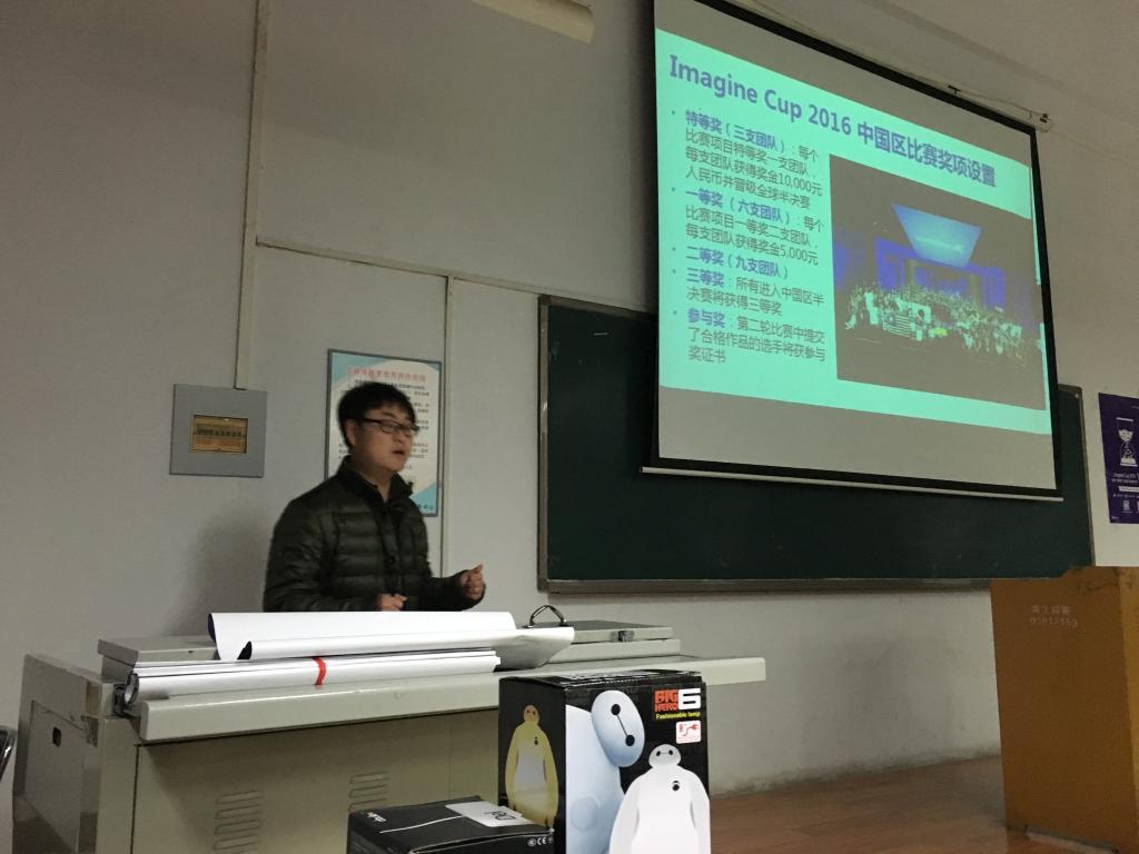 12月7号bevitor伟德国际1946软件学院在14#106教室成功举办了2015-2016年微软创新杯校园之旅活动。本次活动由微软中国有限公司主办,bevitor伟德国际1946软件学院承办,由微软教研室协办。该活动得到了校方的肯定和支持。