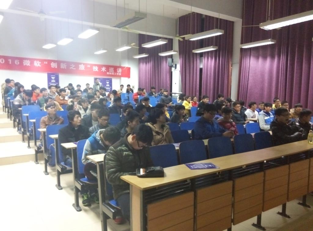 举办微软创新杯这个全球性的赛事已经成为了软件学院的特色,去年腾飞社团的For Our Dream团队开发的The Future Home作品获得了中国区三等奖的佳绩,被录入了刘颖老师主编的2015微软创新杯作品集里面。今年的微软创新之旅活动现场火爆,李海波老师的讲解也让参与活动的同学了解了这个比赛,也激发了同学们参加这个比赛的兴趣。在抽奖环节幸运的同学也获得了微软提供的精品礼品。