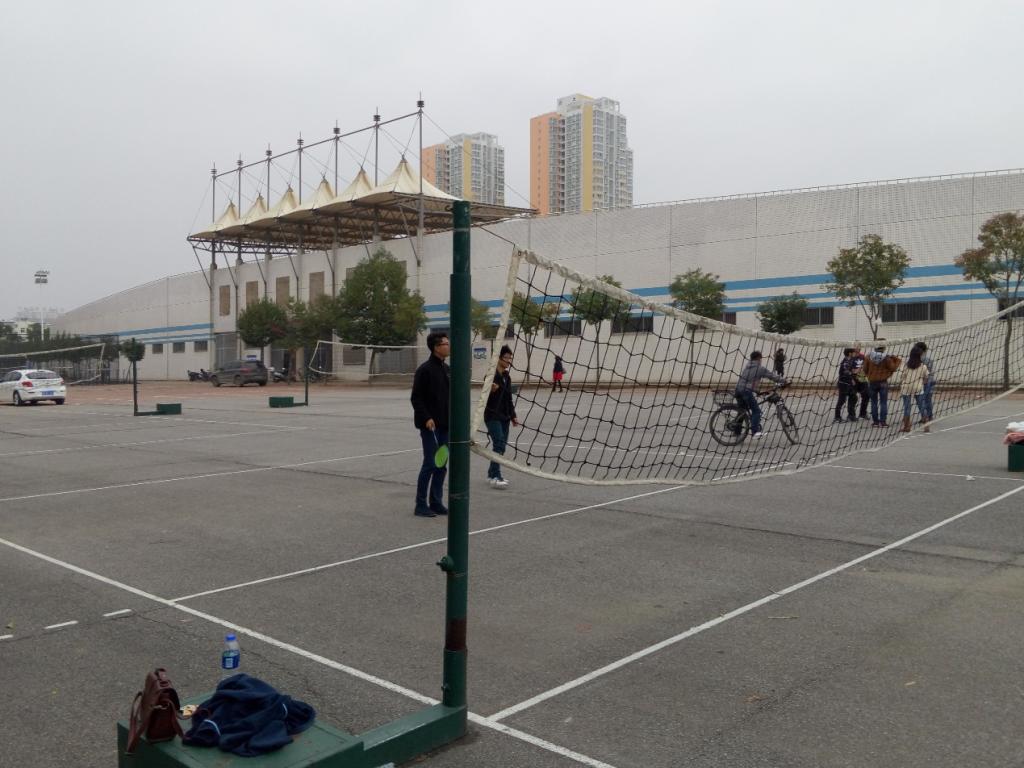 在比赛之后我们又将所有队员随机分为几组,没有社团之分。又进行了额外的比赛,效果很好,更加促进了社团成员之间的感情。男生主要打篮球。女生之间在一块pk羽毛球,这种部分社团的交流赛更像是一场友谊比赛。