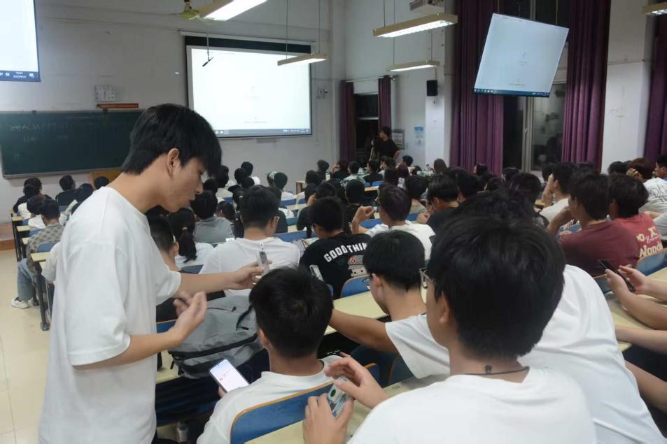 为让宣讲既有吸引力又充满 “干货”,学院提前统筹各社团打磨宣传物料,打造个性化宣讲内容。宣传视频精心设计“搞笑剧情”开篇,紧跟网络潮流,快速抓住新生注意力;视频中段集中展示社团核心业务,如机器人研发、设计创作等实操内容,以及社团斩获的省级竞赛奖项等荣誉成果,彰显社团实力;结尾则穿插学姐学长日常工作场景与社团聚餐画面,生动传递“学技术、交朋友”的温馨氛围。PPT讲解聚焦“社团价值”,清晰阐述加入社团能获得的成长与收获;宣传单简洁介绍社团并展示招新群二维码,方便新生快速检索心仪社团、一键加入交流;个别社团还准备了钥匙扣作为纪念礼,深受新生喜爱,领到小礼物的新生纷纷互相展示,成为宣讲现场的一道亮眼风景。