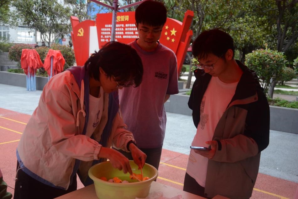活动现场,各板块亮点纷呈。本次活动设置中秋谜会、月影扭欢、嫦娥套愿、月满壶戏、红色知识问答、月兔戏月、听歌识曲七大特色板块。“中秋谜会”以数百条涵盖民俗、历史、文学的灯谜,引起同学们热烈讨论,在智慧的碰撞中感受着古今交融的独特魅力;“月影扭欢”展现了一片充满创意与巧思的扭扭棒天地,同学们利用五颜六色的扭扭棒发挥着天马行空的想象力,让大家在创造的过程中体验匠心独运的乐趣;“嫦娥套愿”的套圈活动,以“套住礼品,寄托期许”的形式,赋予传统游戏新内涵;“月满壶戏”还原投壶古礼,让参与者在体验中感受古人雅致,更将对美好的节日祝福寄托在一次次投掷中;“红色知识问答”以党史、国史题目,激发师生爱国热忱;“月兔戏月”是考验参与者的手上功夫的趣味游戏,在规定时间内从水盆中捞出代表“月亮”的乒乓球,同学紧张而专注,锻炼了大家的耐心与稳定性;“听歌识曲”精选红歌与经典曲目,让师生在音乐中重温时代记忆、抒发家国情怀。七大板块将中秋民俗、红色文化、趣味互动深度融合,为师生打造了沉浸式双节文化体验。
