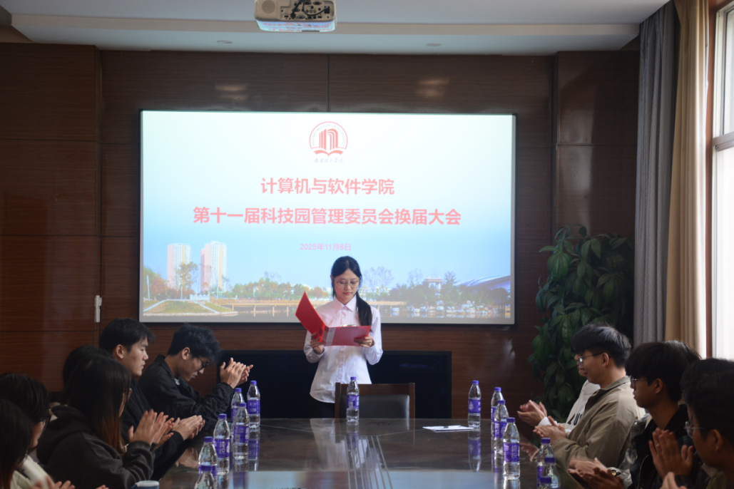 投票结束后,陈可老师发表讲话,言语中,他肯定了上届管委会的工作成果,随后对新一批的管委会成员表示祝贺并寄予厚望,并嘱托大家今后以服务社团、助力学院实践育人为核心,主动对接资源、优化工作机制,在履职中提升自身能力,同时带动科技园整体活力的提升。陈可老师的讲话,稳稳鼓动了新成员们的信心。