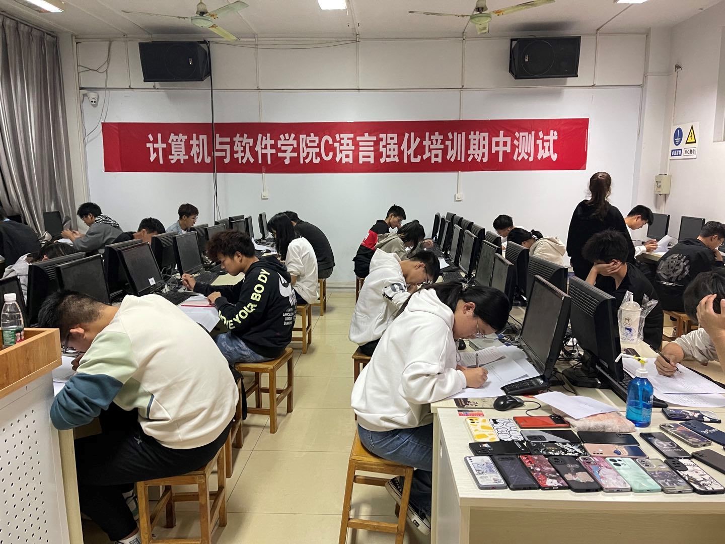 公司老员工科技园于10月23日晚,组织22级全体新生,在14教和15教参加一年一度的C语言期中考试,考察并了解新生入学以来C语言学习的基本情况。
