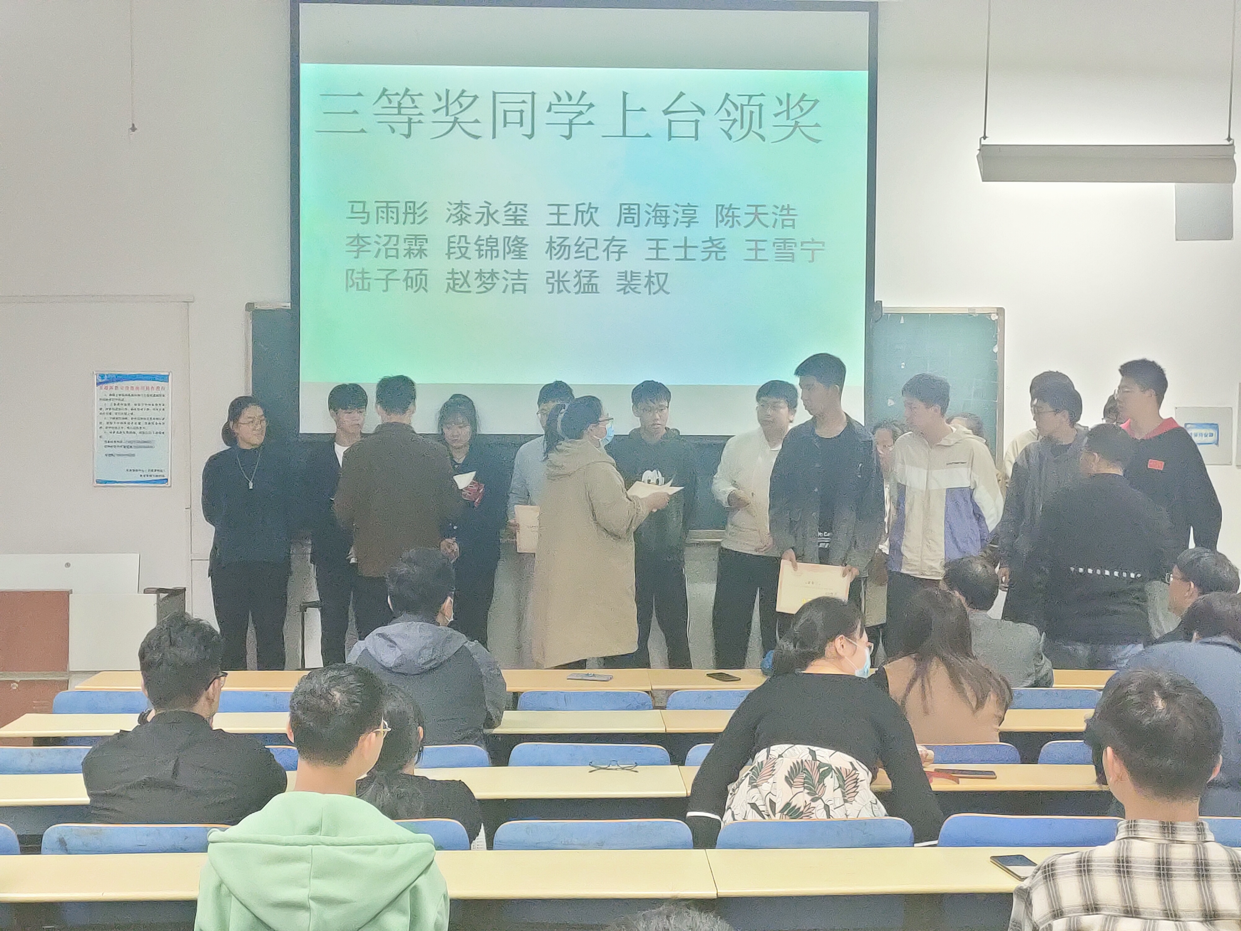 大会伊始,由各位任课老师为获奖同学颁发奖品和奖状,C语言任课教师代表李博老师代表全体老师进行了发言,鼓励大家再接再厉,争取期末考试取得更加优异的成绩。接着由出卷人代表纪威宇同学,监考员代表吴航旭同学,以及改卷员代表夏永磊同学进行发言,为大家介绍了本次期中考试所涉及的知识点,监考的具体情况以及考试结束后的改卷情况,最后由获得本次C语言期中考试一等奖的王宇轩同学向大家介绍了自己的学习方法。
