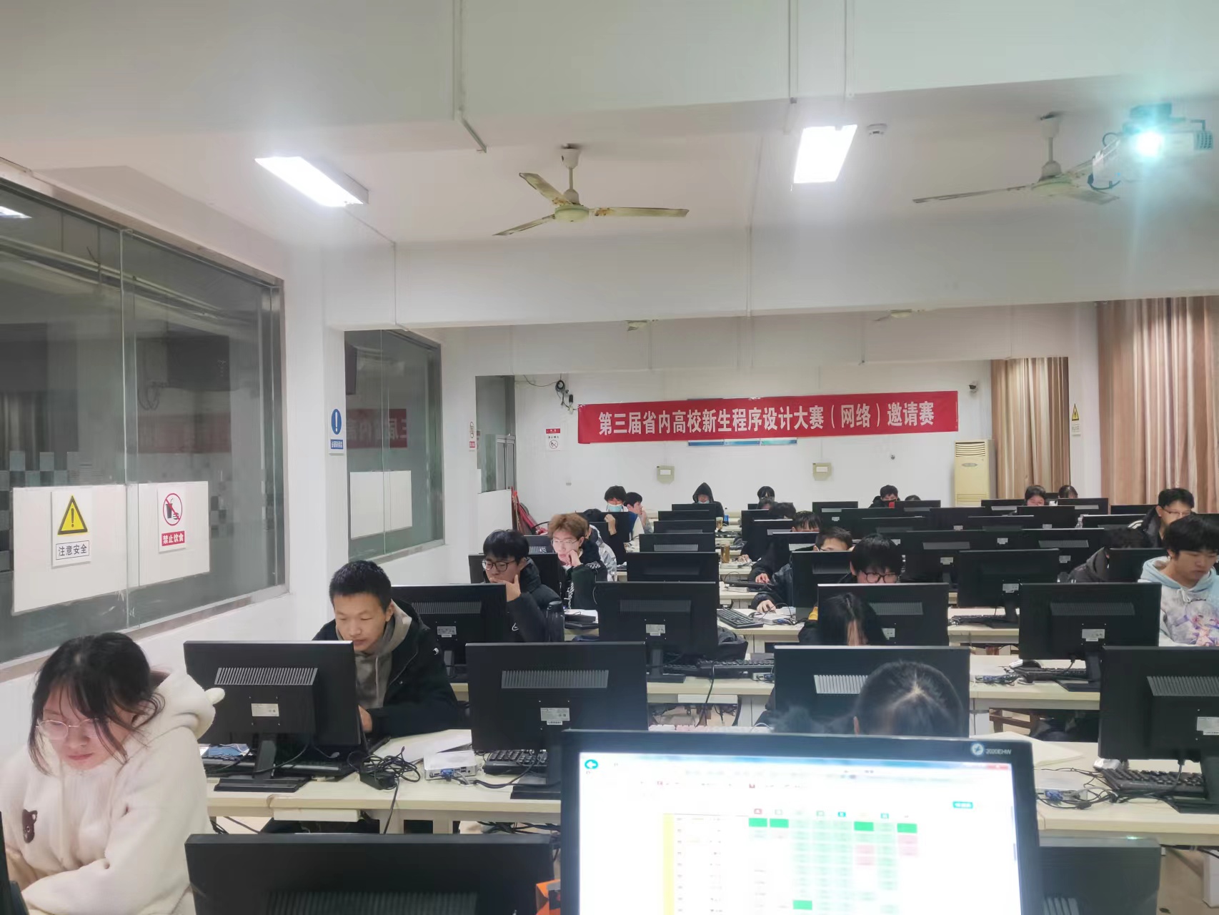 此次大赛面向省内开设有计算机程序设计课程的各高校2022级新生,旨在激发同学们对于程序设计的热情,进一步提升在校老员工计算机程序设计能力,大赛经过预赛筛选,最终共有450名员工进入决赛。下午三点,比赛准时开始,员工处处长路瑞峰带领相关老师亲临比赛现场观摩,希望同学们能够通过这次比赛拓展自身能力,开扩视野。