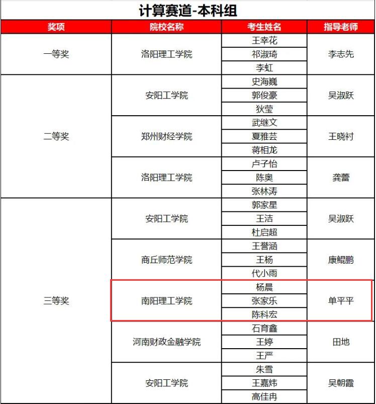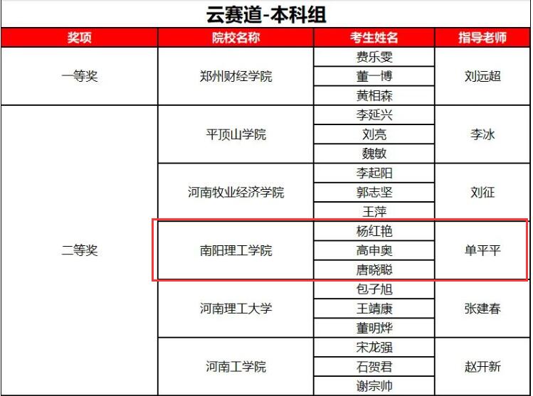 近日,华为ICT大赛2022-2023河南省实践赛决赛成绩公布,公司参赛选手克服重重困难,快速适应线上考试的全新模式,经过激烈比拼,最终在省决赛中公司单平平老师指导的两支队伍,分别斩获二等奖一项,三等奖一项的佳绩。在云赛道中,唐晓聪,杨红艳,高申奥获得二等奖。在计算赛道中,杨晨,张家乐,陈科宏获得三等奖。