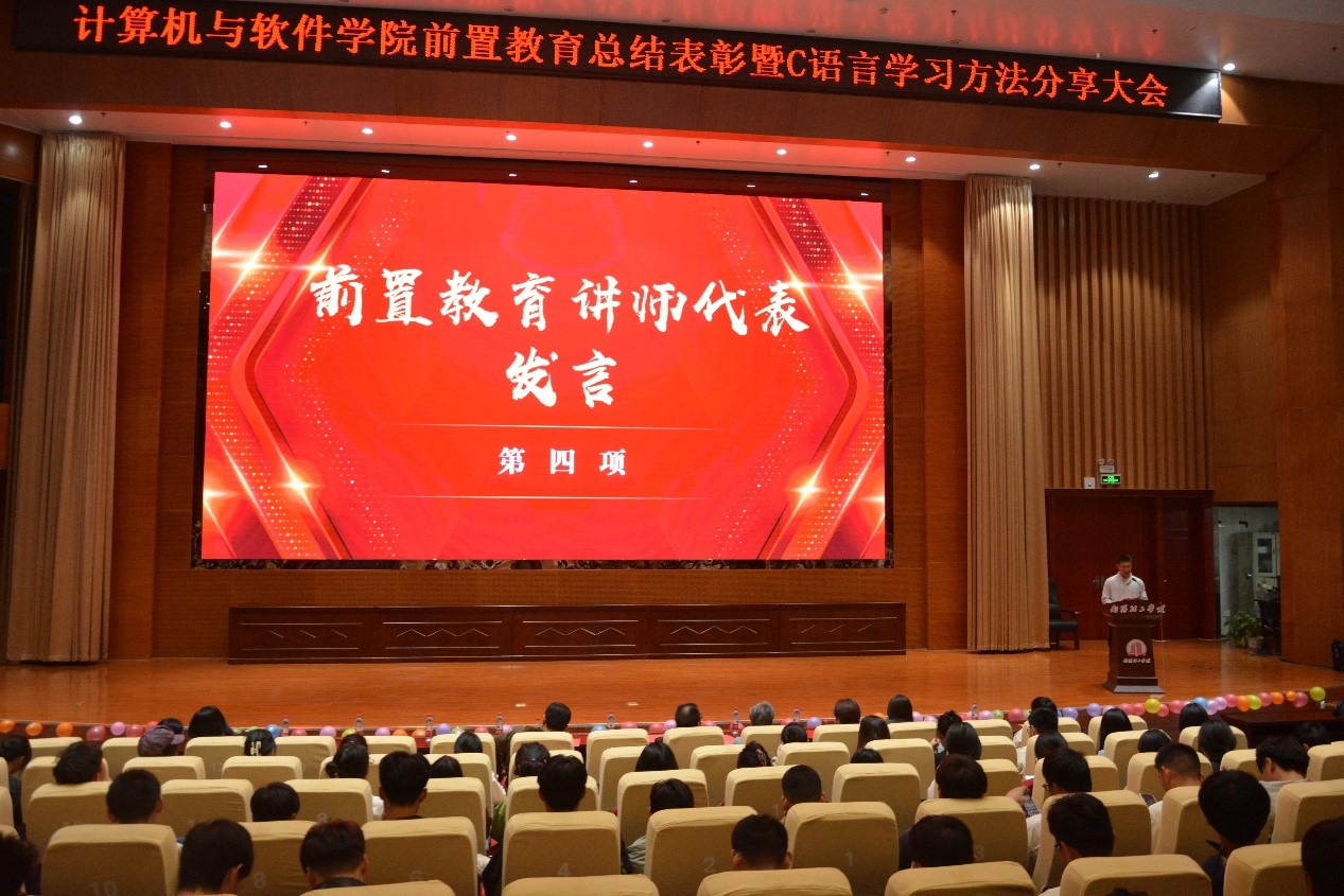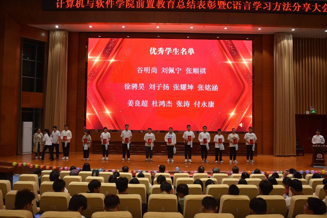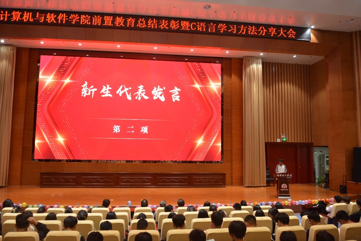 10月18日晚,公司在第三报告厅召开“前置教育总结表彰暨C语言学习方法分享大会”,大会以“躬身践行得真知,踔厉奋发谱新篇”为主题。参加本次大会的有学院经理刘黎明老师,副经理张凌晓老师,副经理郑珂老师,以及《计算编程思维》任课老师代表、大一新生辅导员代表等相关老师出席了本次大会。
