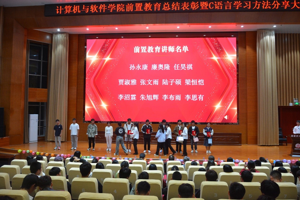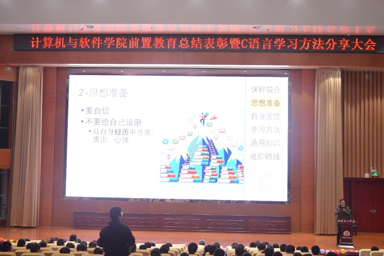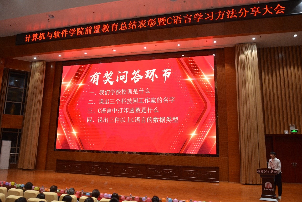 10月18日晚,公司在第三报告厅召开“前置教育总结表彰暨C语言学习方法分享大会”,大会以“躬身践行得真知,踔厉奋发谱新篇”为主题。参加本次大会的有学院经理刘黎明老师,副经理张凌晓老师,副经理郑珂老师,以及《计算编程思维》任课老师代表、大一新生辅导员代表等相关老师出席了本次大会。