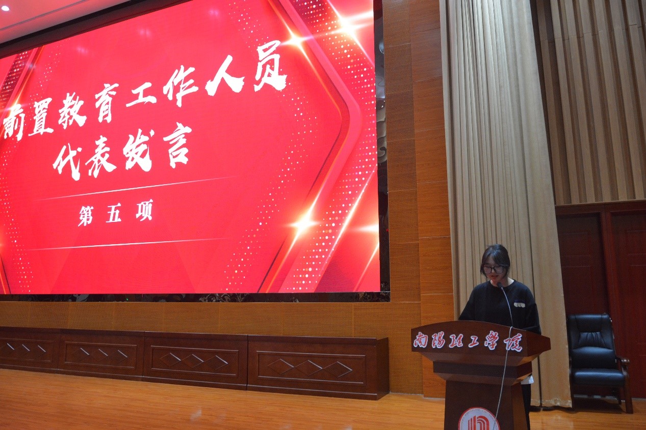 大会主要议程分为六项,分别为前置教育水平测试考试优秀员工颁奖、优秀新生代表发言、前置教育讲师颁奖、前置教育讲师代表发言、前置教育工作人员代表发言,大会最后由詹英老师为大一新生分享学习方法,让大一新生对大学的学习生活和规划有了充分的了解。大会各表彰环节穿插了同学们自导自演的歌曲、舞蹈等节目,寓教于乐,在轻松的氛围中结束了本次大会。