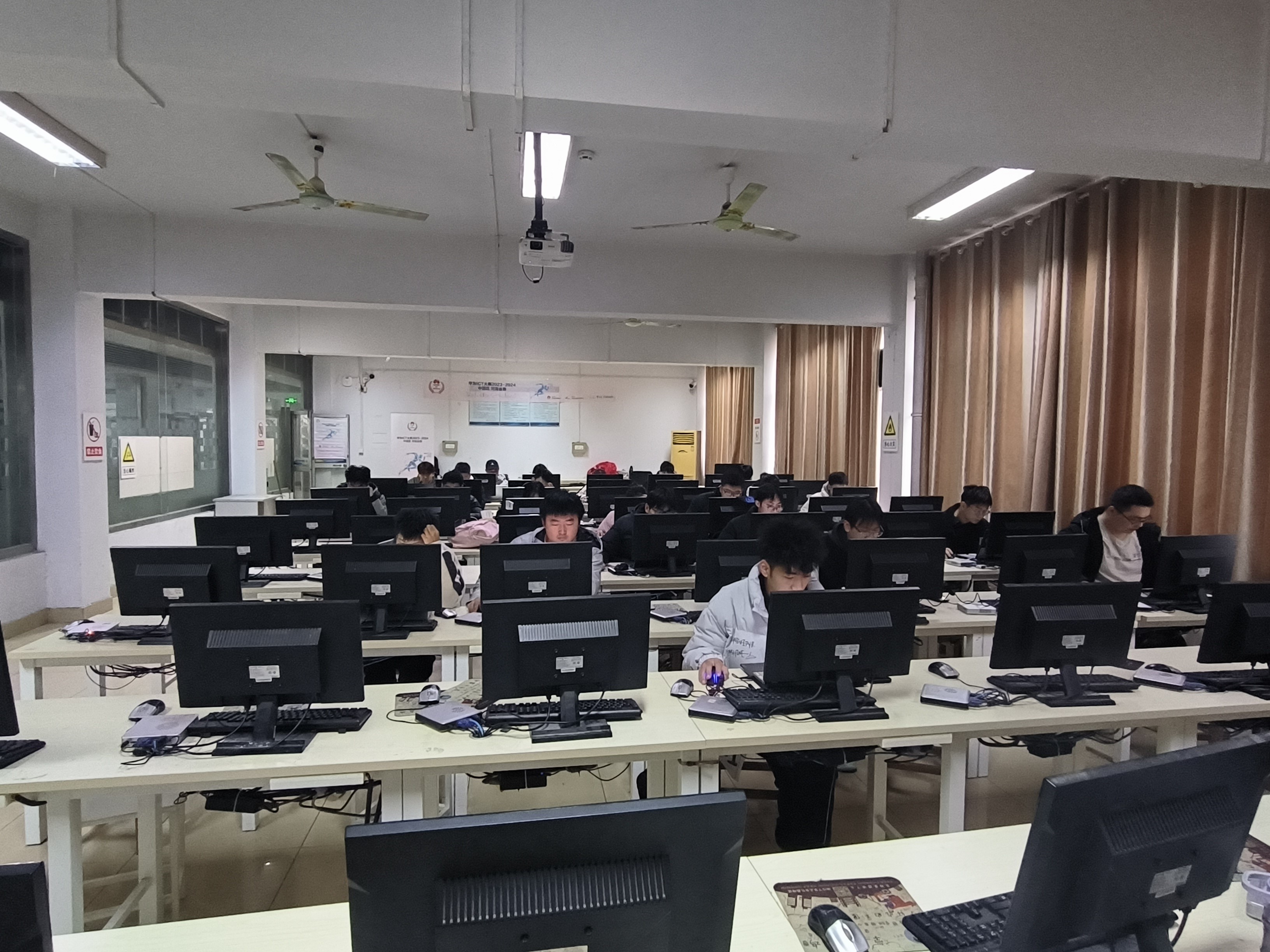 本网讯(特约记者/单平平)11月25日,华为ICT大赛-河南省实践赛省赛初赛在公司十五号教学楼正式开赛。公司学子共50余人分别参加了“云赛道”、“计算赛道”和“网络赛道”的比赛。